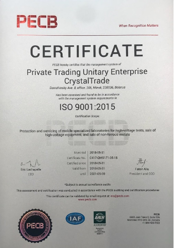 При поставке лаборатории, все средства измерений, входящие в ее состав, будут внесены в Государственный реестр средств измерений Республики Беларусь или пройдут поверку/калибровку в РУП «БелГИМ»