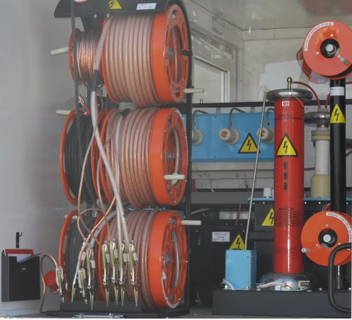 Кабельные барабаны служат для подсоединения лаборатории к объектам испытаний, измерений, питающей сети и системе заземления. На всех барабанах имеются блокируемые штекерные разъемы, ручной привод, тормозное устройство.